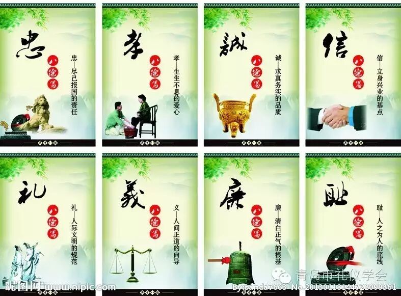 不同历史时期会有重点不同的道德要求,有的时候,人们也思考在“旧道德”的基础上建构“新道德”,但万变不离其宗,“八德”所深深蕴涵的道德之魂却不能离弃。近代以来,有人主以“孝、悌、忠、信”为基础,吸收西方近代道德,建构中国道德;有人确立“礼、义、廉、耻”这“四维”的地位,发动新生活运动。这仍然看到了“八德”的价值与意义。