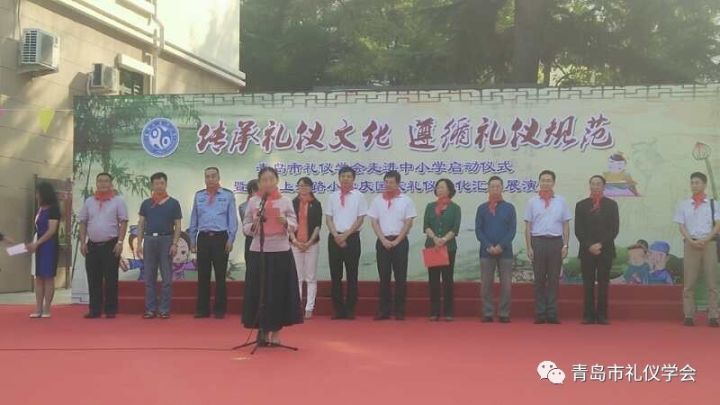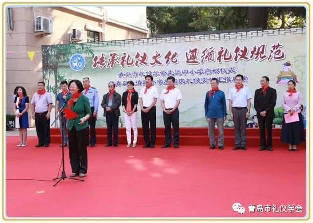 简短、优雅的迎宾与领巾佩戴仪式过后,正式进入青岛市礼仪学会礼仪文化走进中小学启动仪式环节。