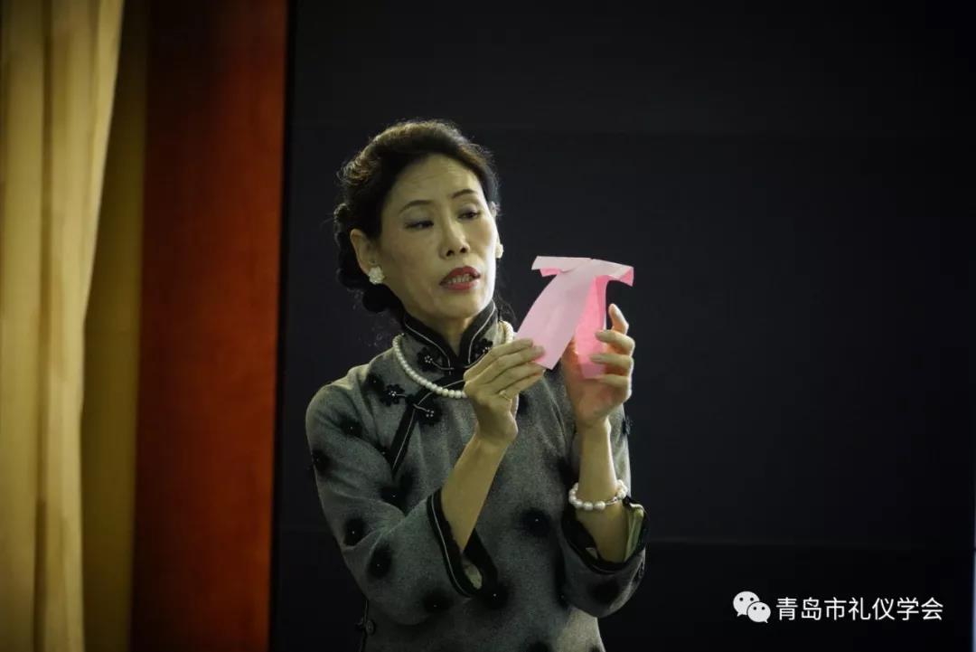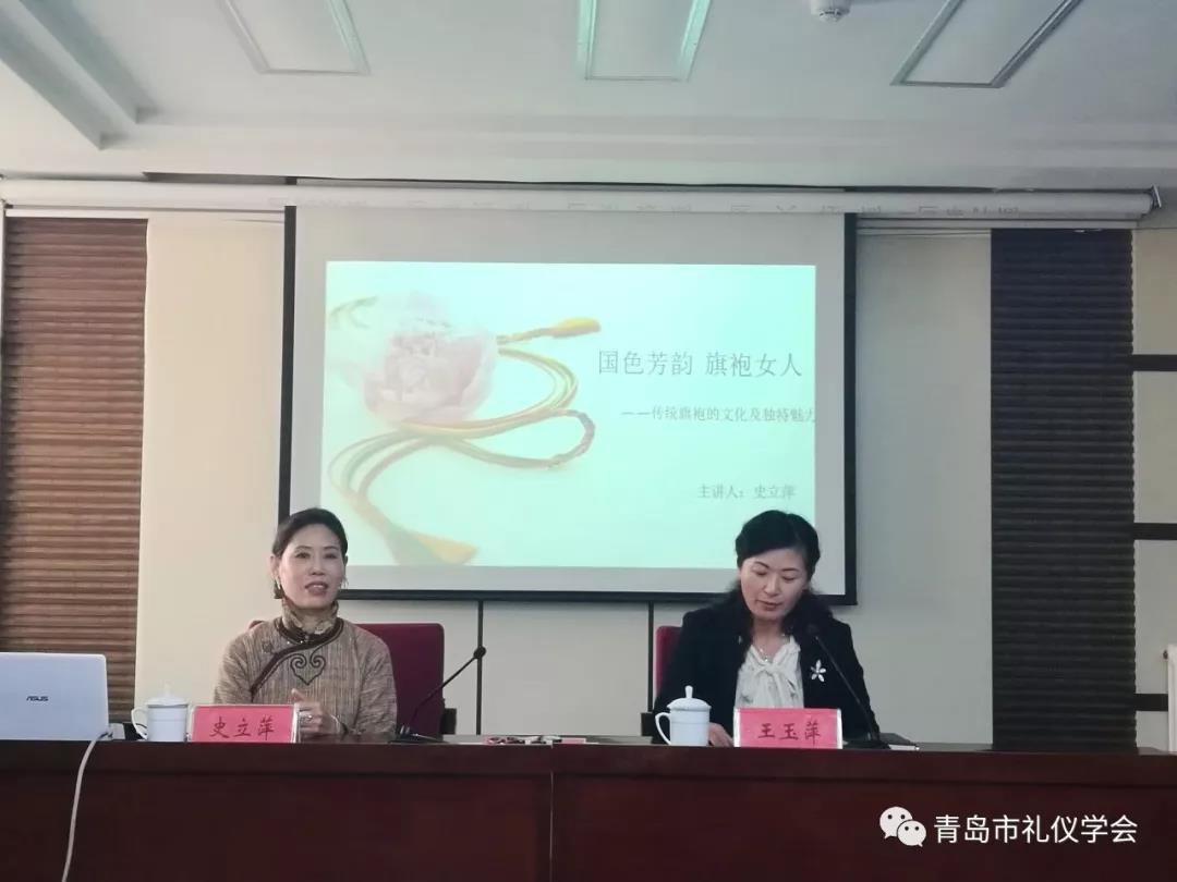 青岛市礼仪学会顾问、中国传统旗袍制作技艺传承人北京服装学院史立萍教授,讲座的题目是《国色芳韵褀袍女人——传统服饰文化的魅力》。