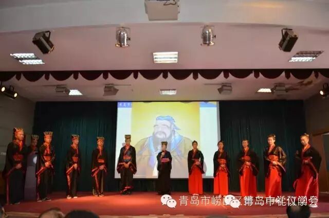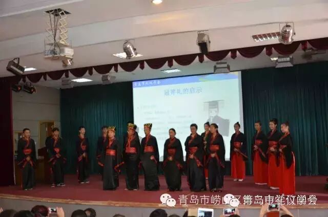 2015年9月28日,青岛市礼仪学会成立大会暨纪念孔子诞辰2566周年成人礼活动在崂山二中举行。青岛市社科联、青岛市民政局、民盟市委领导及兄弟学会代表应邀出席成立大会,青岛市礼仪学会成员及崂山二中部分教师学生出席会议并在礼堂举行了隆重的纪念孔子诞辰2566周年暨成人礼活动。活动首先进行了成人礼知识讲座,接下来10名男女学生在庄严的仪式中接受诸位贤达的加冠加笄,拜谢父母、师长。由青岛大学法学院社会学系教授、孟子第72代传人孟天运教授为成人同学命字,并接受青岛大学文学院院长刘怀荣聆训,最后面向孔子像同学们肃然起敬,“志在千里,重任在肩,心系中华之崛起;读书劳动,修身子立德,不忘家国之重托”……,在庄严宣誓中,同学们深感做为一名中华儿女肩负的重任,深受教育。