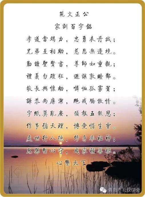 我国宋代名臣范仲淹“先天下之忧而忧,后天下之乐而乐”的豪迈情怀激励了一代又一代的仁人志士,然而却鲜有人知其家训对后世子孙的庇荫。考察其家族兴旺近千年的因由,无不赞叹其百字家训的贯彻实施。